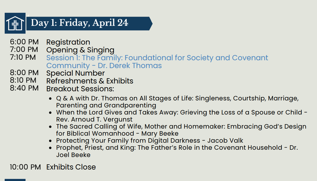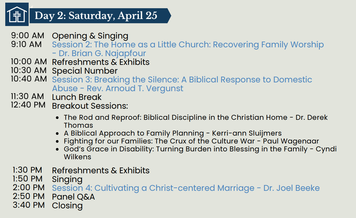 Our Go & Teach Conference 2026 is meant to develop and deepen a Reformed, Biblical understanding of the Christ-centered home in a Christless culture. With four main sessions and nine breakout sessions to choose from, we will look at the various facets of a well-functioning Christian family, as well as the challenges our families face in this world. Beginning with a basic understanding of the family as the foundation of society and the covenant community, we then consider how the home is to be as a little church. We also seek to break the silence on the reality of domestic abuse, offering a Biblical response to this serious issue. Finally, we will explore how to cultivate a Christ-centered marriage, which lies at the very heart of a healthy and happy home. Pray with us that this conference will be a great blessing, used by the Lord to strengthen and build homes that faithfully witness to Christ in our culture.